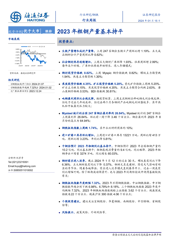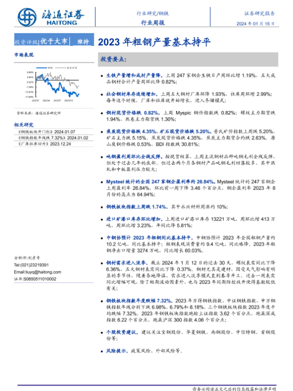 【海通证券】【20240115】20240115-海通证券-钢铁行业周报:2023年粗钢产量基本持平-15页