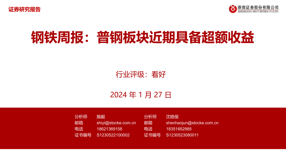【浙商证券】【20240127】20240127-浙商证券-钢铁周报:普钢板块近期具备超额收益-12页