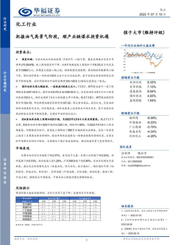【华福证券】【20220710】化工行业专题研究:把握油气高景气阶段,顺产业链谋求投资机遇-17页