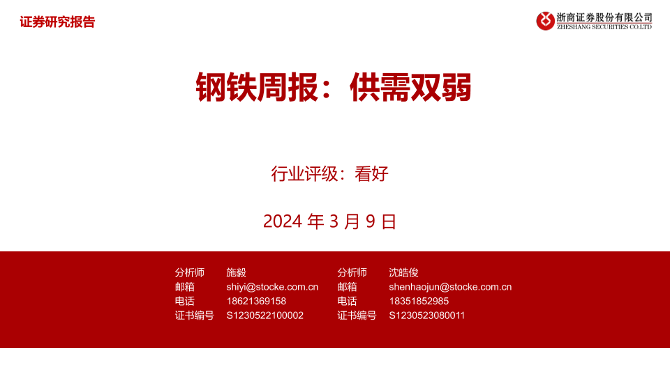 【浙商证券】【20240309】20240309-浙商证券-钢铁周报:供需双弱-12页