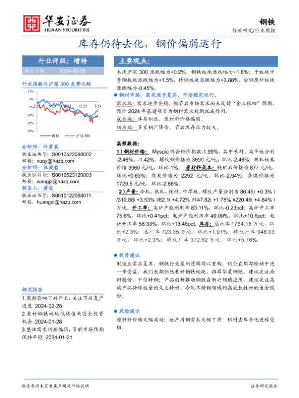 【华安证券】【20240309】库存仍待去化,钢价偏弱运行-12页
