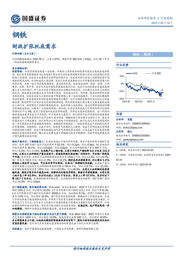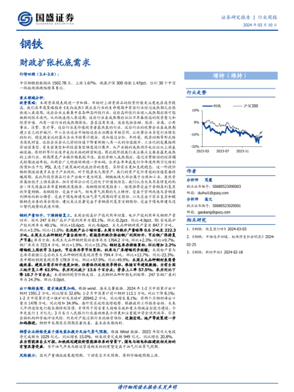 【国盛证券】【20240310】20240310-国盛证券-钢铁行业周报:财政扩张托底需求-17页