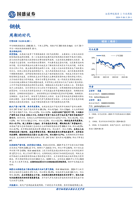 【国盛证券】【20240629】钢铁行业周报:周期的时代-16页