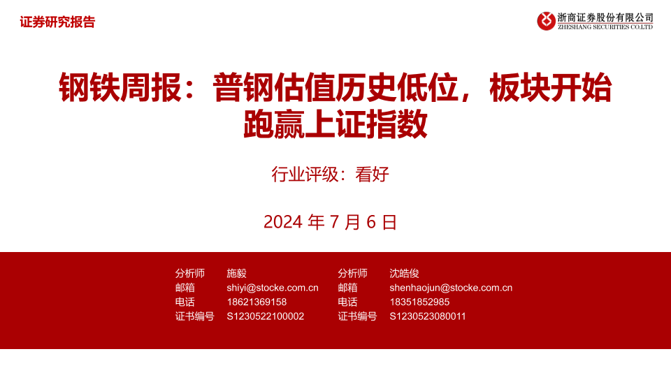 【浙商证券】【20240706】20240706-浙商证券-钢铁周报:普钢估值历史低位,板块开始跑赢上证指数-12页