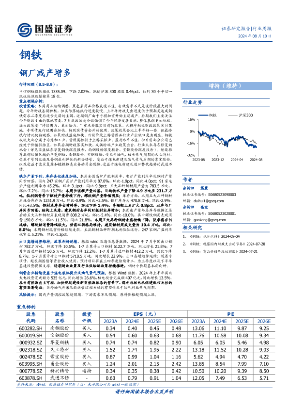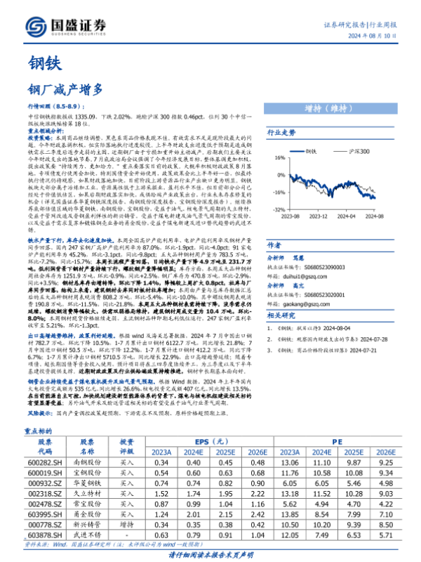 【国盛证券】【20240810】20240810-国盛证券-钢铁行业周报:钢厂减产增多-15页