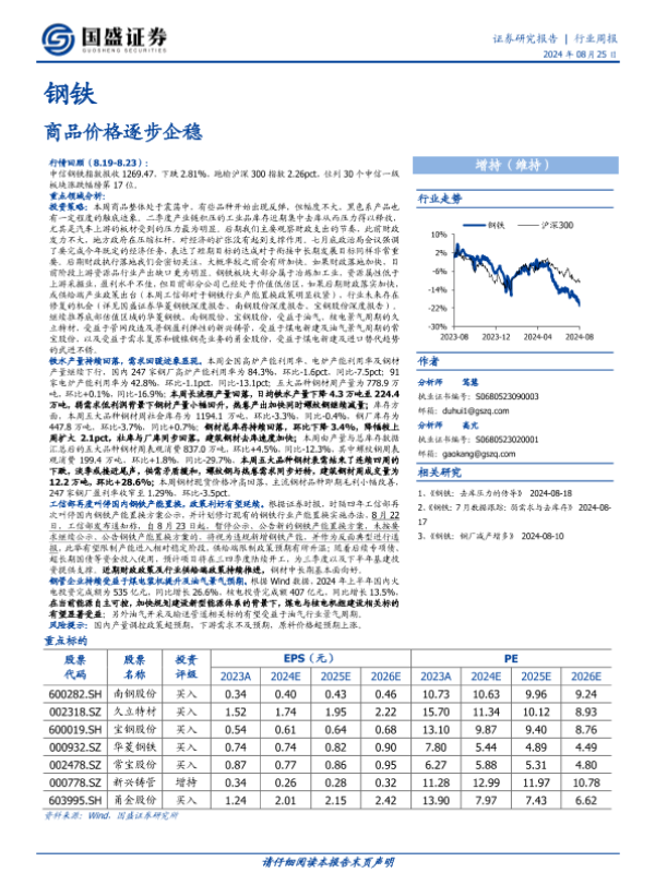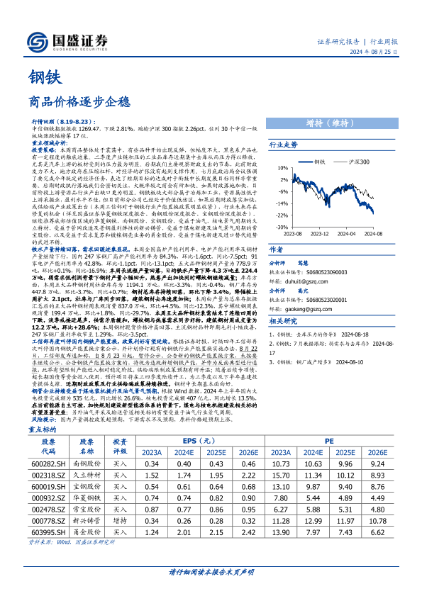 【国盛证券】【20240825】20240825-国盛证券-钢铁行业周报:商品价格逐步企稳-14页