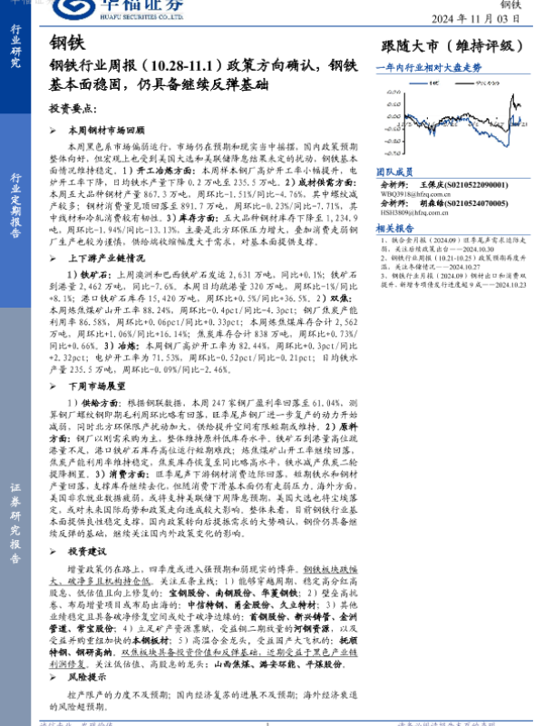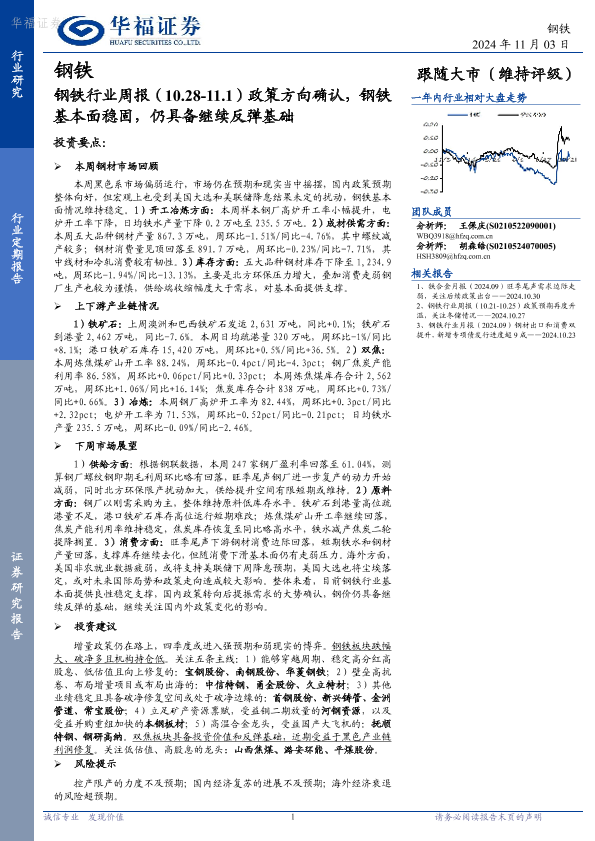 【华福证券】【20241103】20241103-华福证券-钢铁行业周报:政策方向确认,钢铁基本面稳固,仍具备继续反弹基础-22页