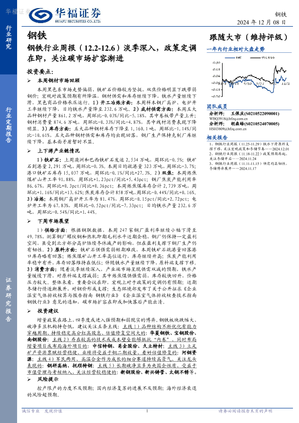 【华福证券】【20241208】钢铁行业周报:淡季深入,政策定调在即,关注碳市场扩容渐进-19页