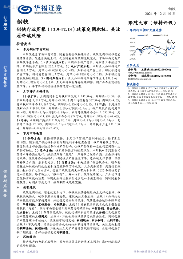 【华福证券】【20241215】20241215-华福证券-钢铁行业周报:政策定调积极,关注原料端风险-19页