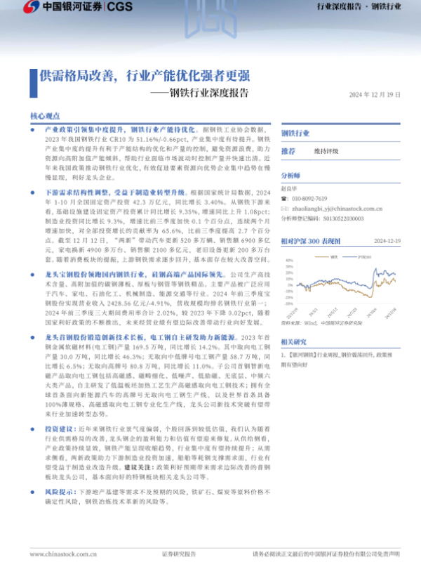 【银河证券】【20241219】20241219-中国银河-钢铁行业行业深度报告:供需格局改善,行业产能优化强者更强-30页