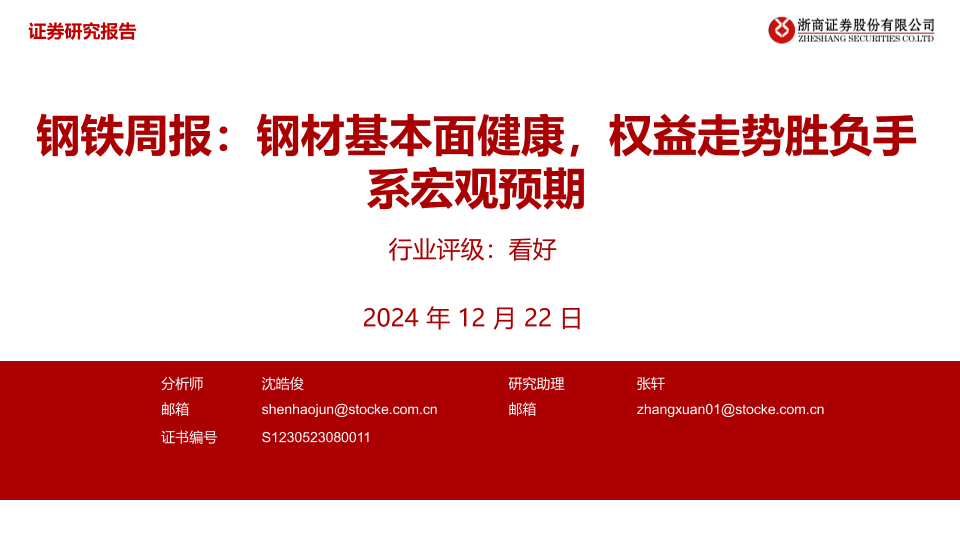 【浙商证券】【20241222】钢铁周报:钢材基本面健康,权益走势胜负手系宏观预期-11页
