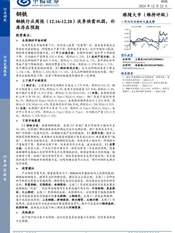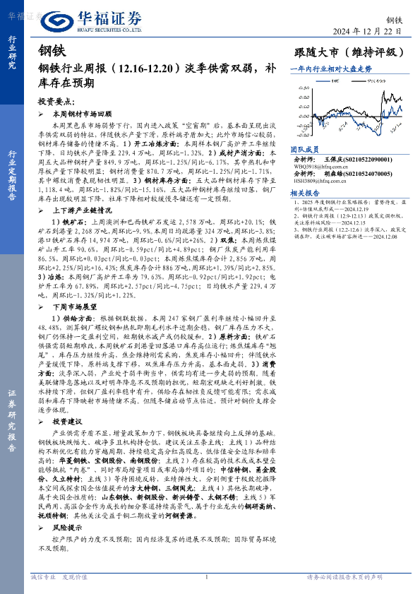 【华福证券】【20241222】20241222-华福证券-钢铁行业周报:淡季供需双弱,补库存在预期-20页
