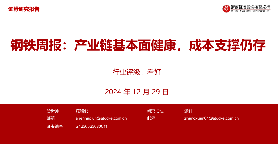 【浙商证券】【20241229】钢铁周报:产业链基本面健康,成本支撑仍存-12页