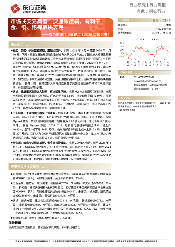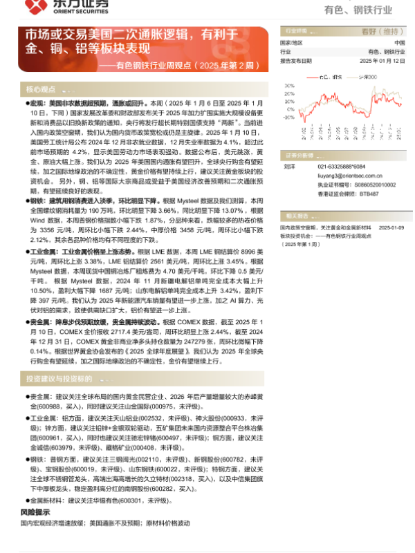【东方证券】【20250112】有色钢铁行业周观点(2025年第2周):市场或交易美国二次通胀逻辑,有利于金、铜、铝等板块表现-26页