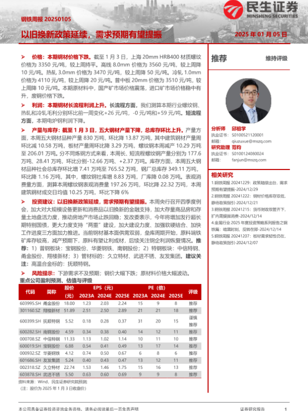 【民生证券】【20250105】20250105-民生证券-钢铁周报:以旧换新政策延续,需求预期有望提振-20页