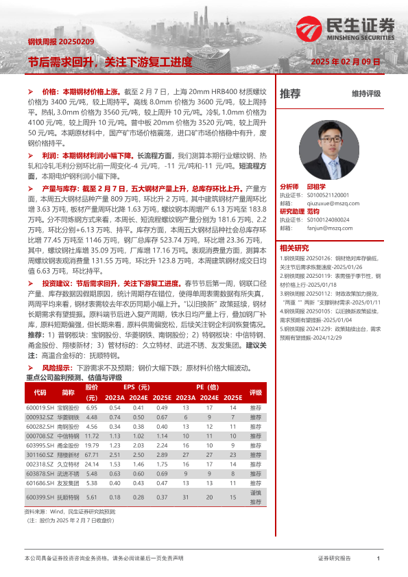 【民生证券】【20250209】节后需求回升,关注下游复工进度-20页