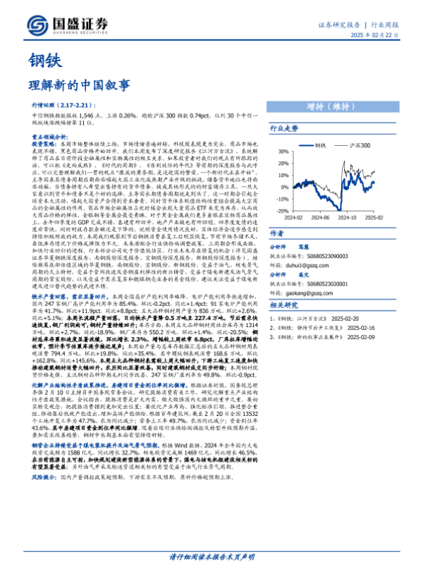 【国盛证券】【20250222】20250222-国盛证券-钢铁行业周报:理解新的中国叙事-16页