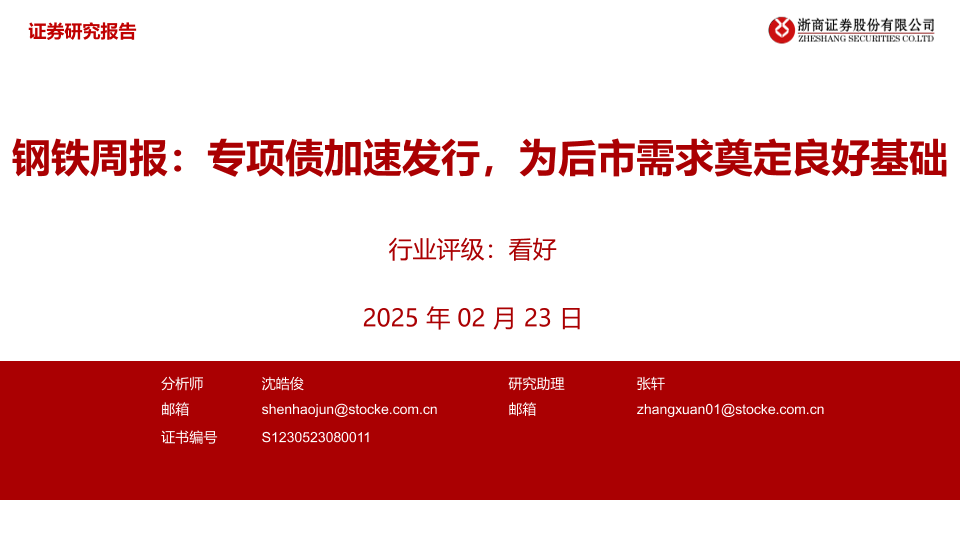 【浙商证券】【20250223】钢铁周报:专项债加速发行,为后市需求奠定良好基础-11页