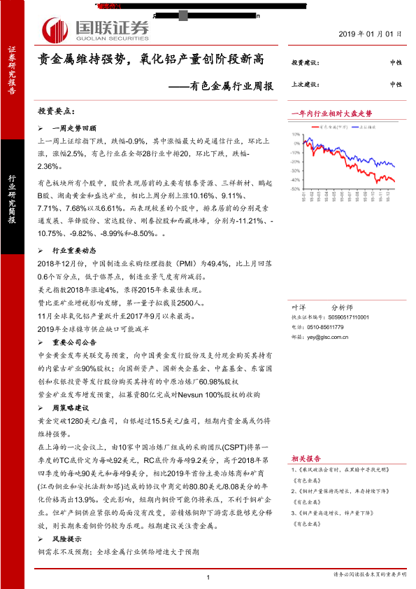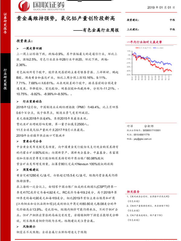【国联证券】【20190101】20190101-国联证券-有色金属行业周报:贵金属维持强势,氧化铝产量创阶段新高-10页