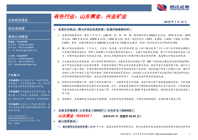 【信达证券】【20190114】20190114-信达证券-卓越推:有色行业-5页
