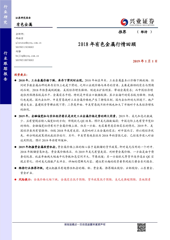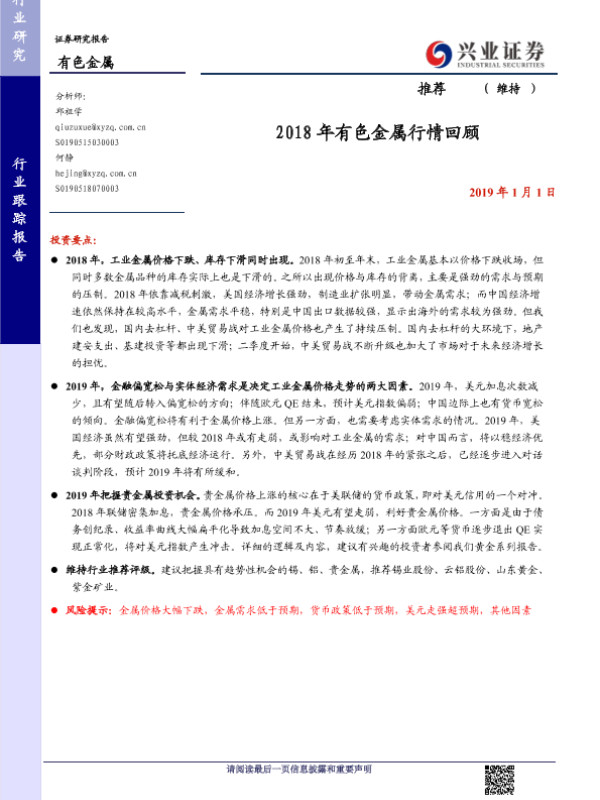 【兴业证券】【20190101】2018年有色金属行情回顾-11页