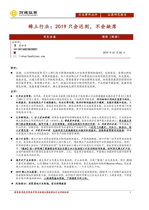【财通证券】【20190106】稀土行业:2019只会迟到,不会缺席-3页