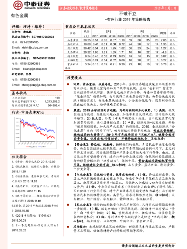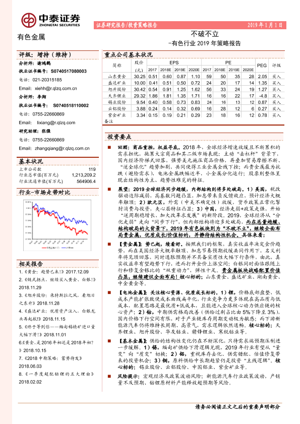 【中泰证券】【20190101】有色行业2019年策略报告:不破不立-57页