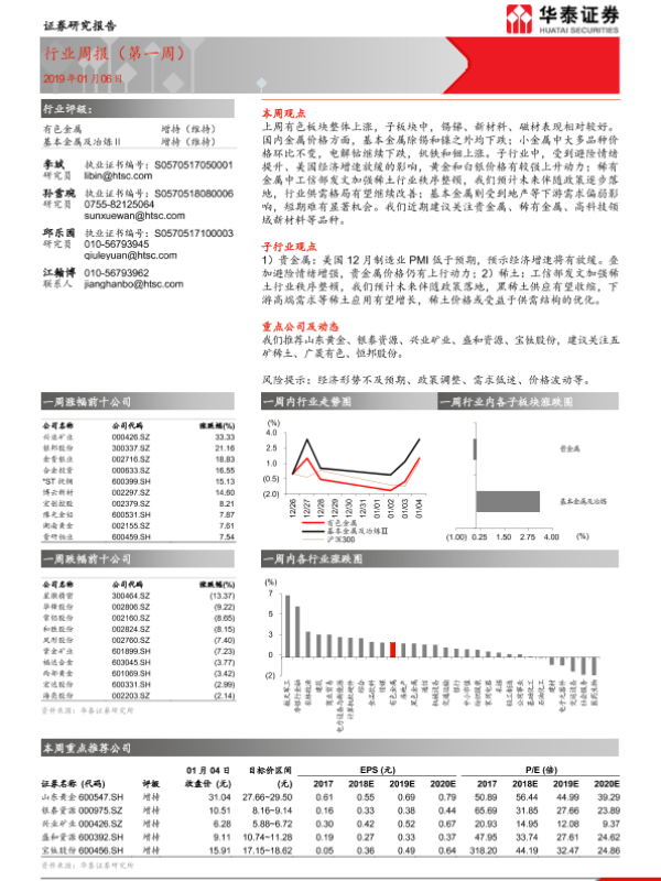 【华泰证券】【20190106】20190106-华泰证券-有色金属行业周报(第一周)-20页