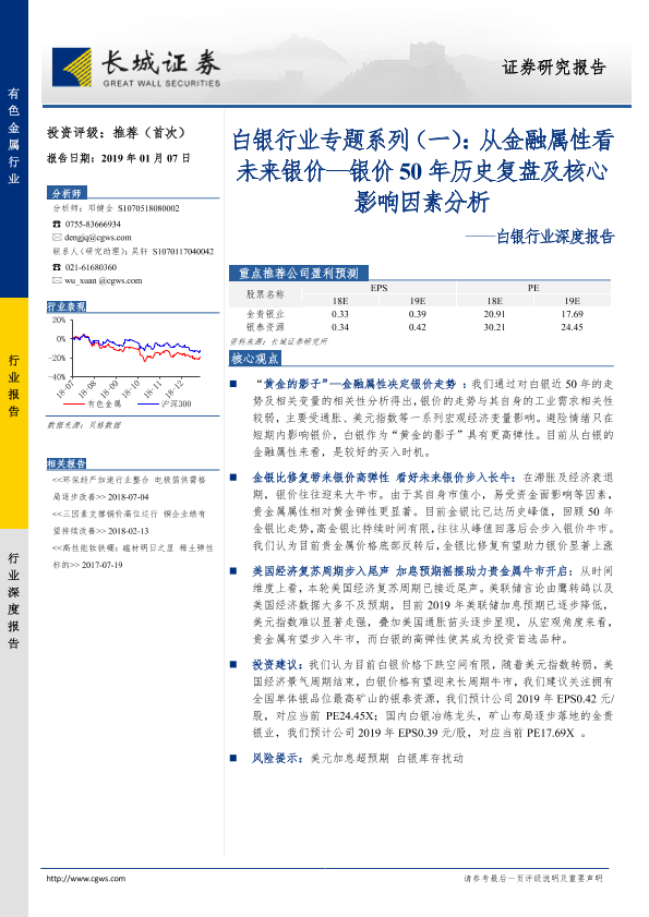 【长城证券】【20190107】20190107-长城证券-白银行业深度报告:白银行业专题系列(一):从金融属性看未来银价—银价50年历史复盘及核心影响因素分析-23页
