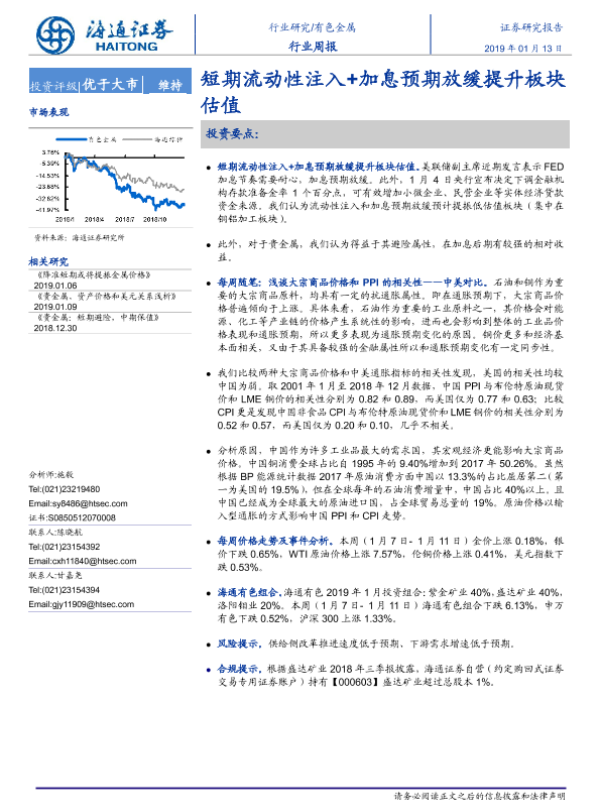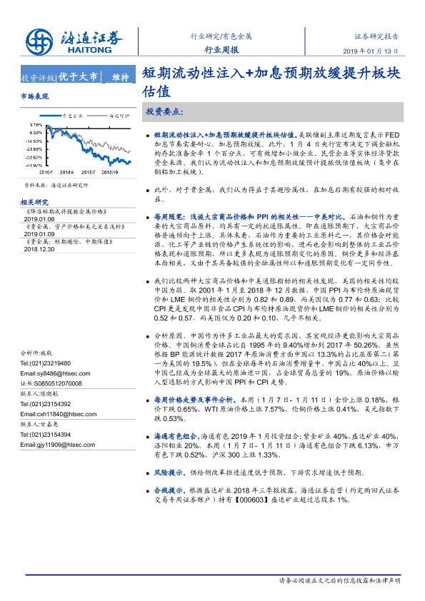 【海通证券】【20190113】20190113-海通证券-有色金属行业周报:短期流动性注入+加息预期放缓提升板块估值-10页