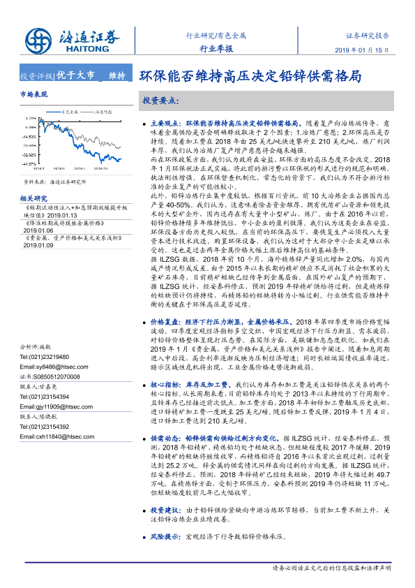 【海通证券】【20190115】环保能否维持高压决定铅锌供需格局-6页