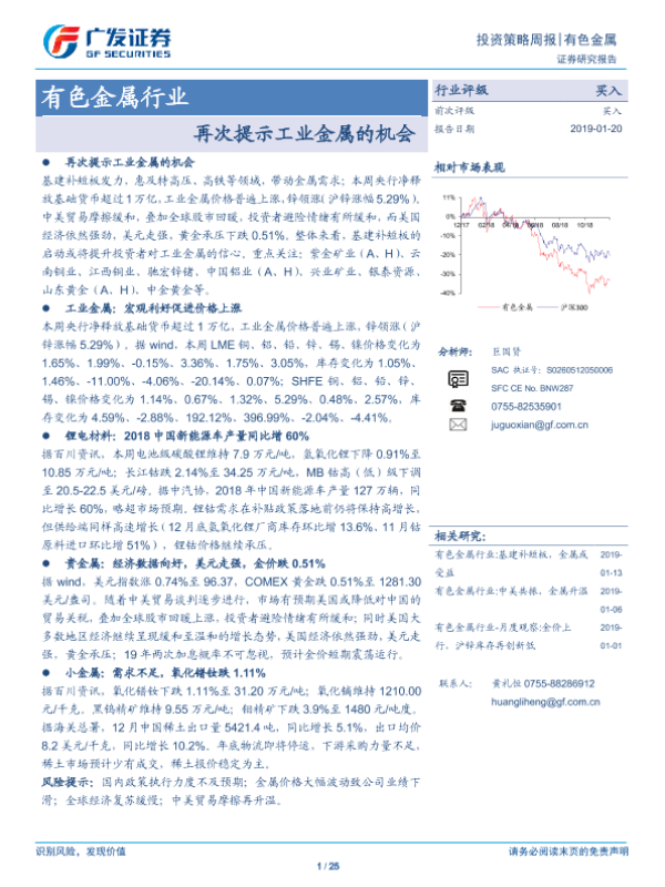 【广发证券】【20190120】有色金属行业:再次提示工业金属的机会-25页