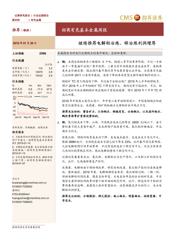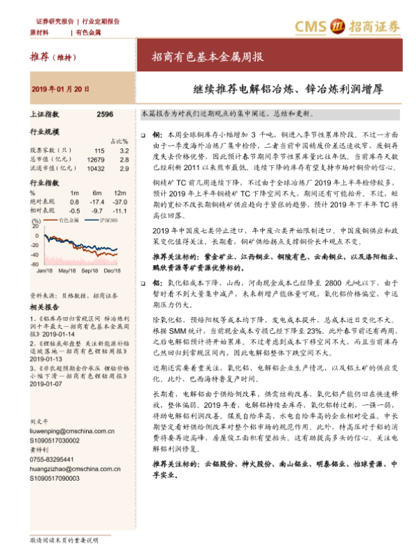 【海通证券】【20190120】招商有色基本金属周报:继续推荐电解铝冶炼、锌冶炼利润增厚-19页