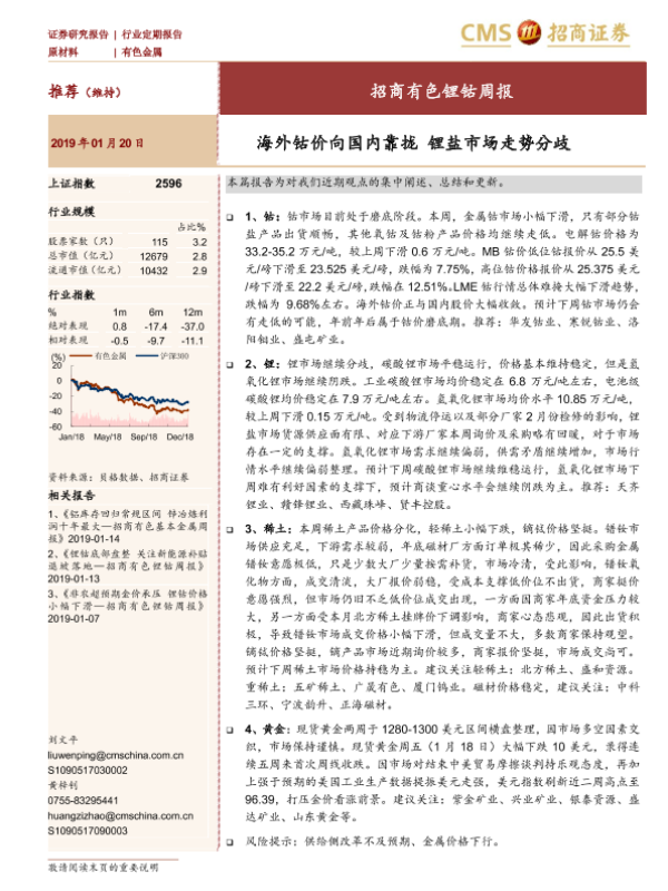 【海通证券】【20190120】20190120-招商证券-招商有色锂钴周报:海外钴价向国内靠拢 锂盐市场走势分歧-15页