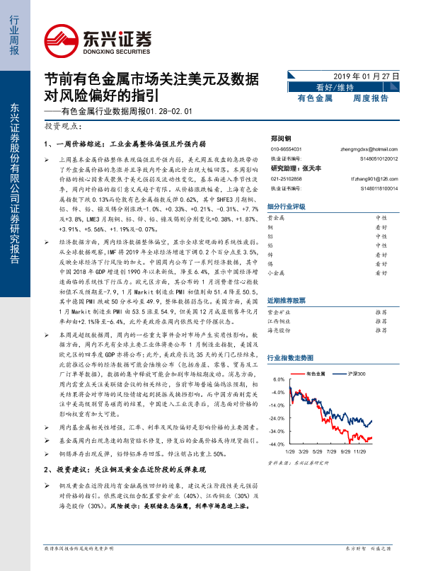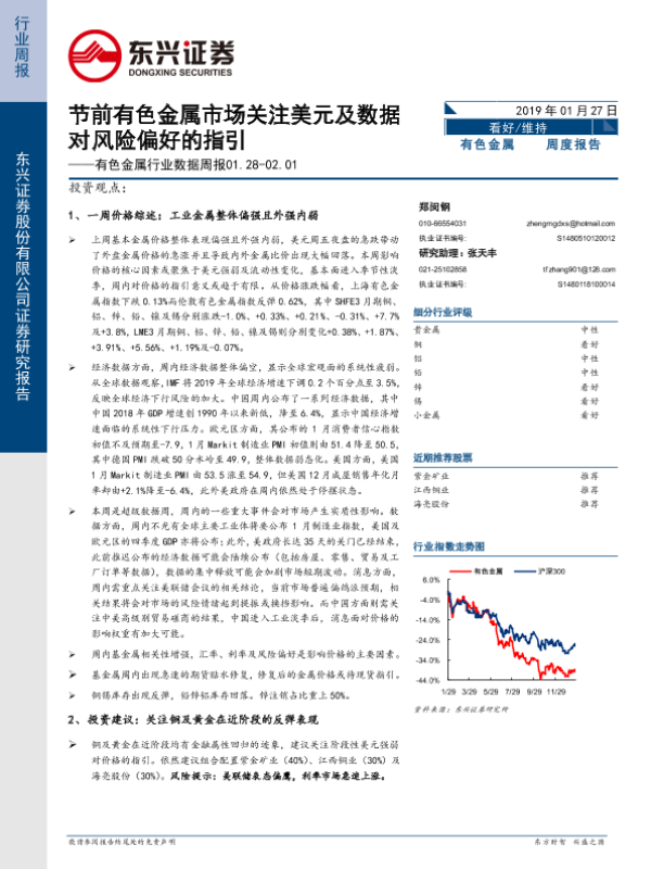 【东兴证券】【20190127】20190127-东兴证券-有色金属行业数据周报:节前有色金属市场关注美元及数据对风险偏好的指引-15页