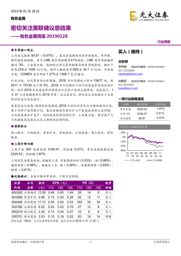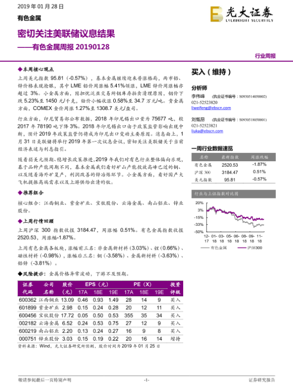 【光大证券】【20190128】20190128-光大证券-有色金属周报:密切关注美联储议息结果-17页
