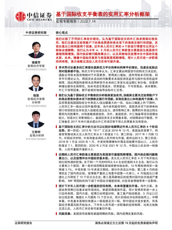 【中信证券】【20220714】基于国际收支平衡表的实用汇率分析框架-20页