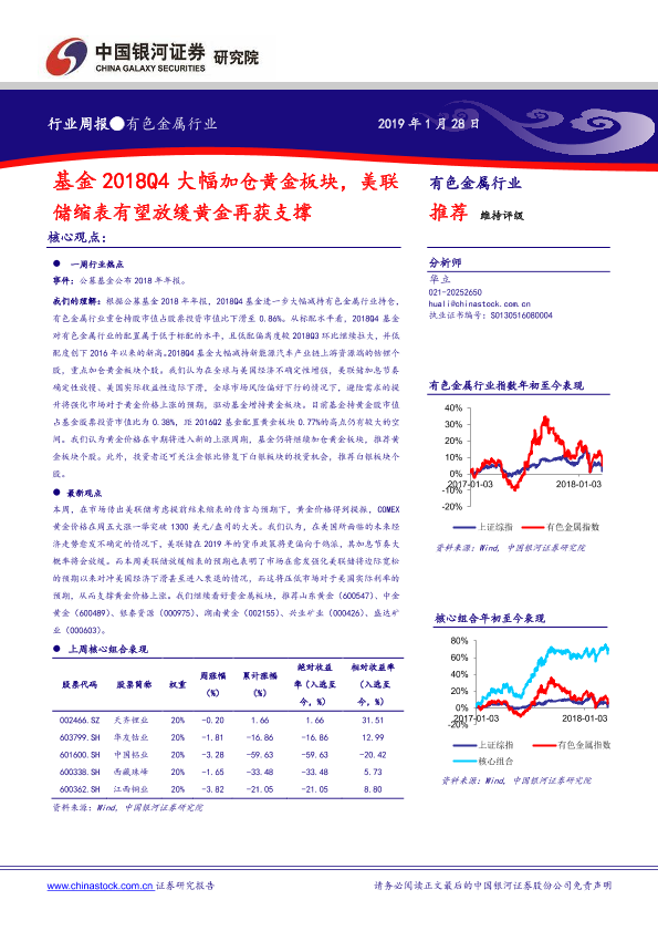 【银河证券】【20190128】20190128-中国银河-有色金属行业周报:基金2018Q4大幅加仓黄金板块,美联储缩表有望放缓黄金再获支撑-21页