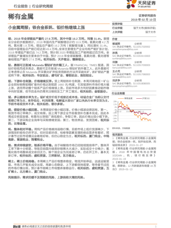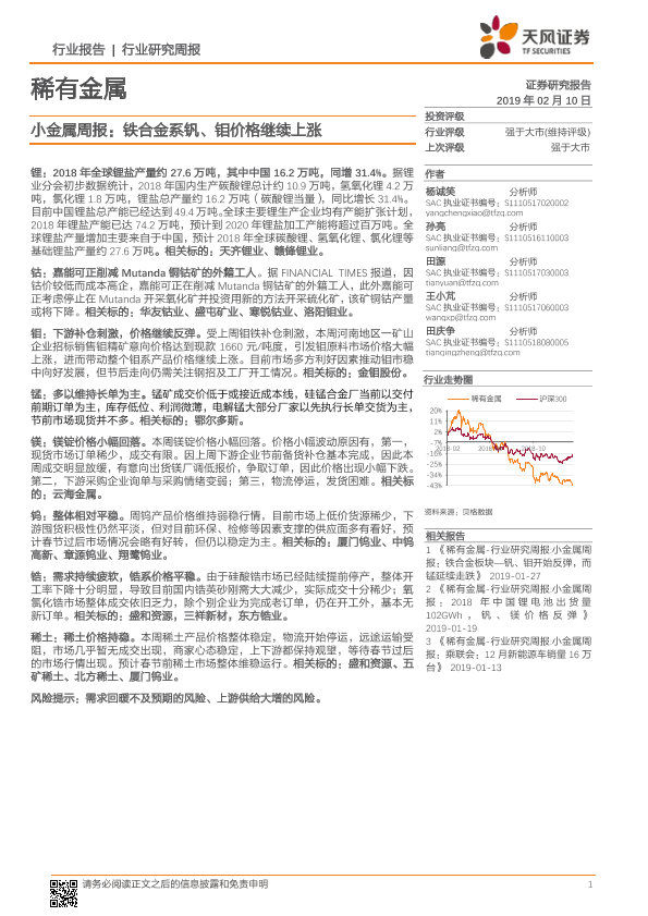 【天风证券】【20190210】20190210-天风证券-小金属周报:铁合金系钒、钼价格继续上涨-16页