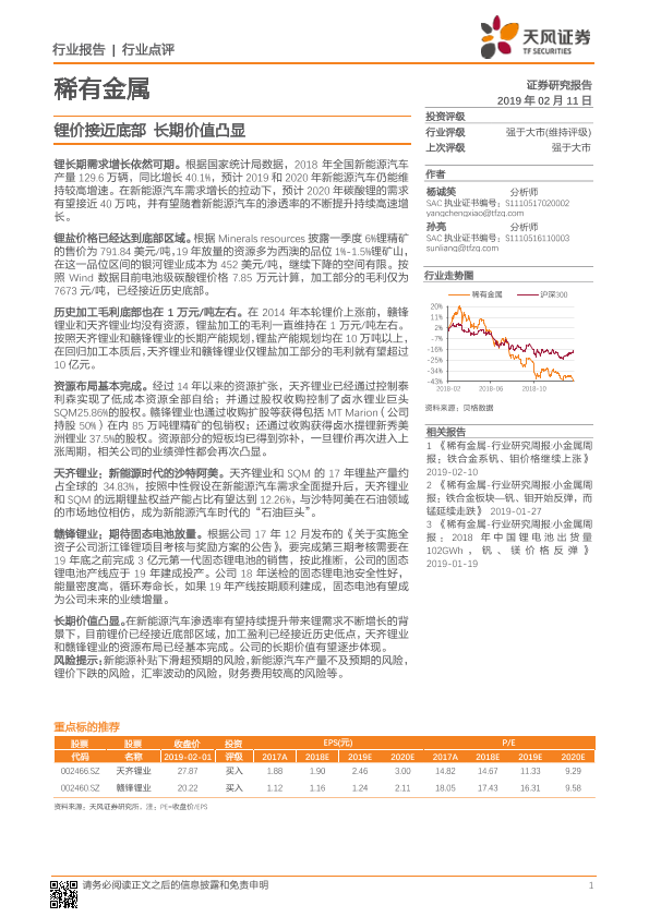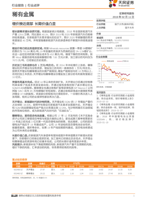 【天风证券】【20190211】稀有金属:锂价接近底部 长期价值凸显-2页