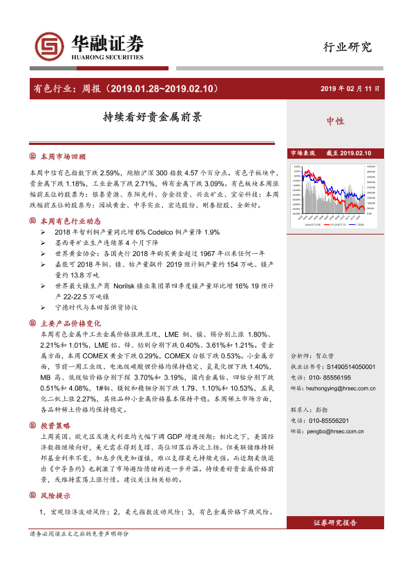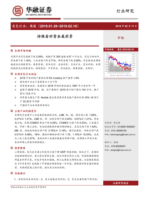 【华融证券】【20190211】20190211-华融证券-有色行业周报:持续看好贵金属前景-22页