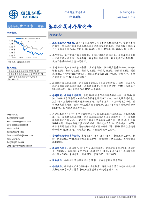 【海通证券】【20190217】20190217-海通证券-有色金属行业周报:基本金属库存增速快-9页