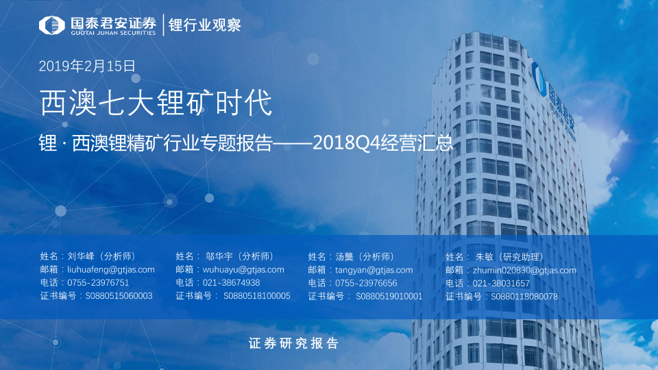 【国泰君安证券】【20190215】锂·西澳锂精矿行业专题报告:2018Q4经营汇总-25页