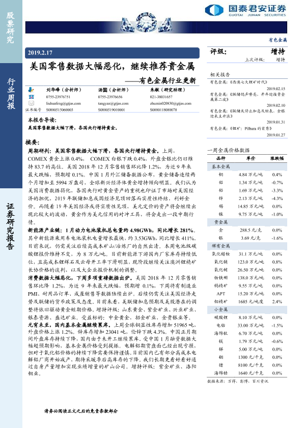 【国泰君安证券】【20190217】美国零售数据大幅恶化,继续推荐贵金属-14页