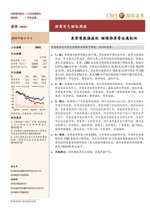 【海通证券】【20190217】招商有色锂钴周报:美零售数据疲软 继续推荐贵金属板块-11页