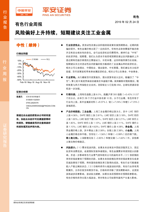 【平安证券】【20190224】有色行业周报:风险偏好上升持续,短期建议关注工业金属-5页