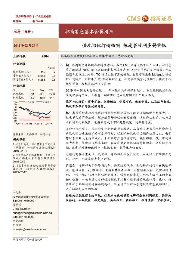 【海通证券】【20190224】招商有色基本金属周报:供应担忧打造强铜 银漫事故利多锡锌银-21页