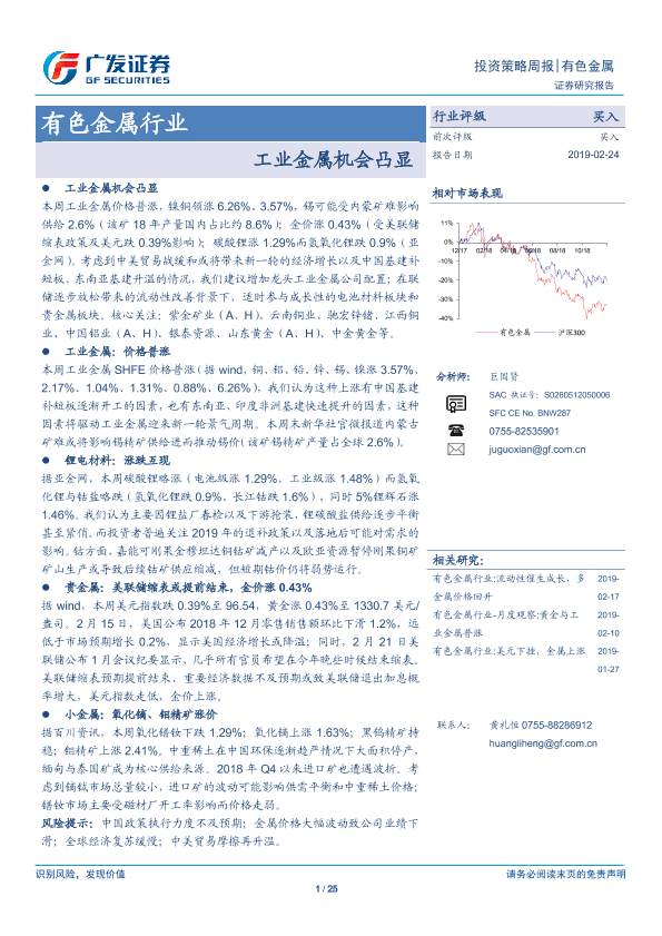 【广发证券】【20190224】有色金属行业投资策略周报:工业金属机会凸显-25页