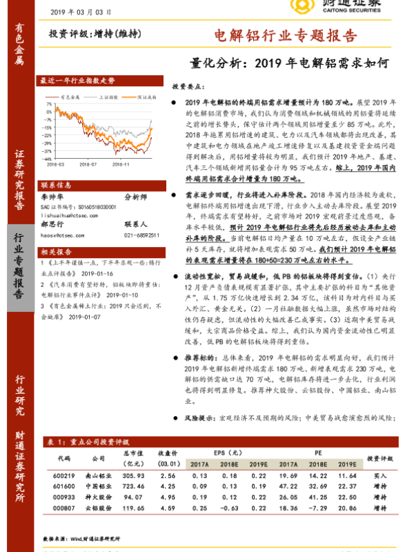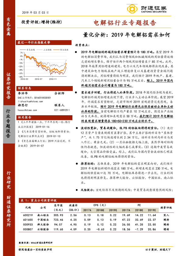 【财通证券】【20190303】20190303-财通证券-电解铝行业专题报告:量化分析:2019年电解铝需求如何-22页