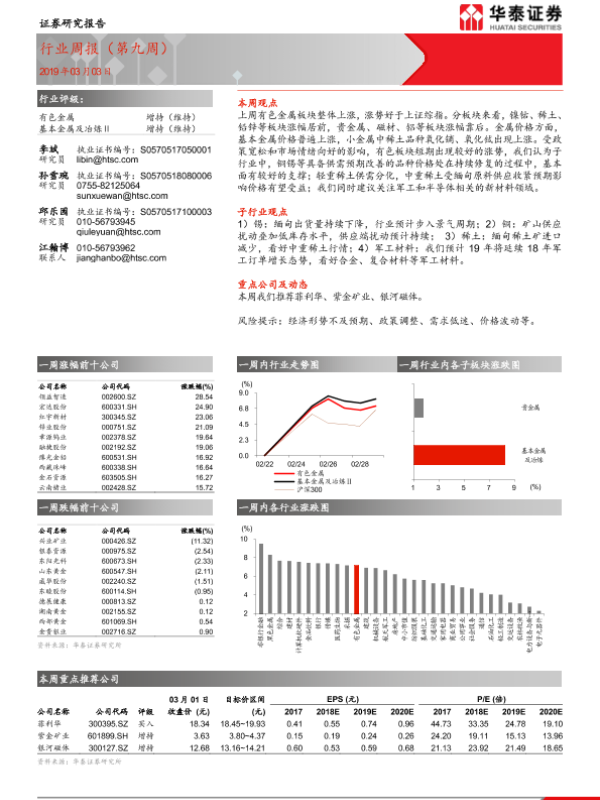 【华泰证券】【20190303】20190303-华泰证券-有色金属行业周报(第九周)-20页